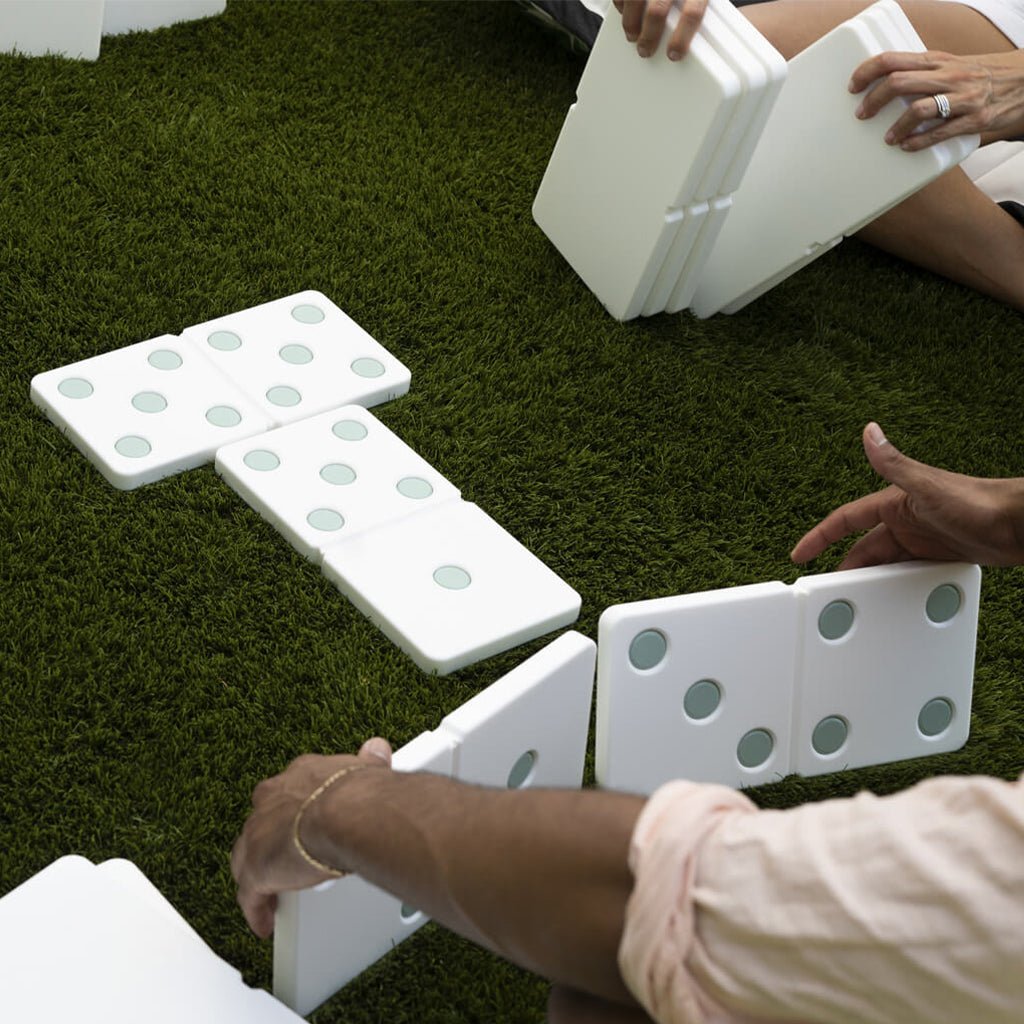It’s time to step up your game days with Ledge Lounger’s Giant Dominoes! Everyone knows that nothing beats a friendly game of dominos, and with this giant lawn set, you can take the fun to the next level. With 28 white and sage big domino pieces, you can keep the fun going all night long. And no worries when it comes to clean-up - they come complete with a compact storage stand for quick and easy storage. So if you’re looking for an addition that's sure to be a hit at your next get together or barbecue, look no further than Ledge Lounger's Giant Dominoes!