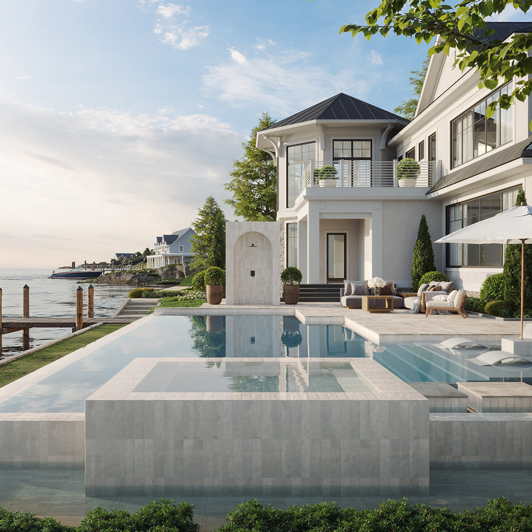 The Coastline Series by BluHaven Porcelain evokes the breezy charm and natural beauty of the seaside, making it a perfect choice for poolscapes and outdoor living areas. Inspired by the ocean's shifting tides, sandy shores, and sunlit waves, each porcelain tile features coastal tones and organic textures that bring a relaxed, beachside ambiance to any space. The glossy finish captures and reflects light like water glistening under the sun, adding movement and elegance to pools, spas, fountains, and patio walls. Crafted for durability and weather resistance, these porcelain tiles are built to endure sun, chemicals, and moisture - ideal for both coastal climates and inland escapes. Indoors, Coastline shines as a backsplash or shower tile, infusing interiors with seaside serenity. Whether you're designing a backyard retreat or enhancing your pool’s edge, the Coastline Series brings the calming essence of the coast into every detail. Drift into coastal luxury, one tile at a time.