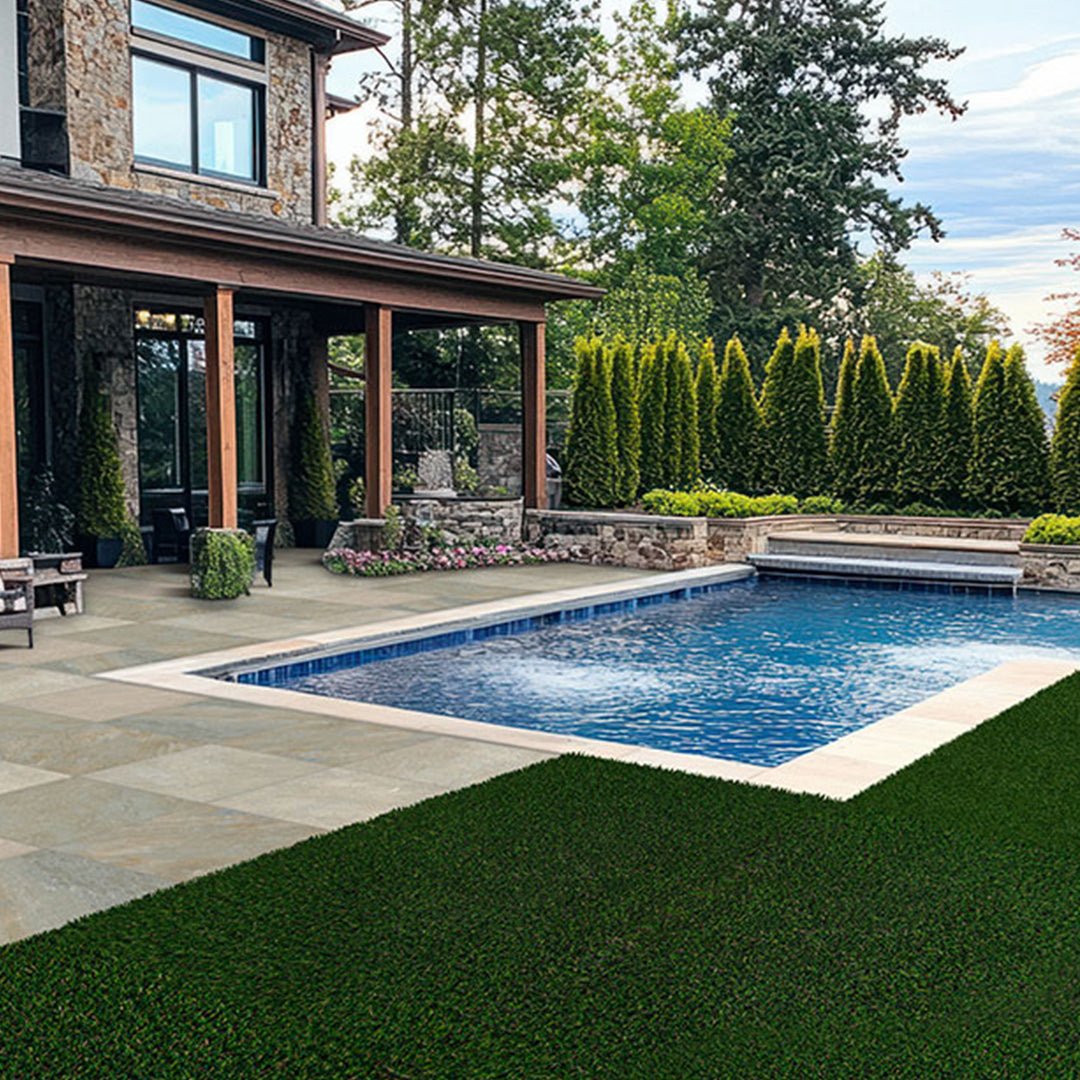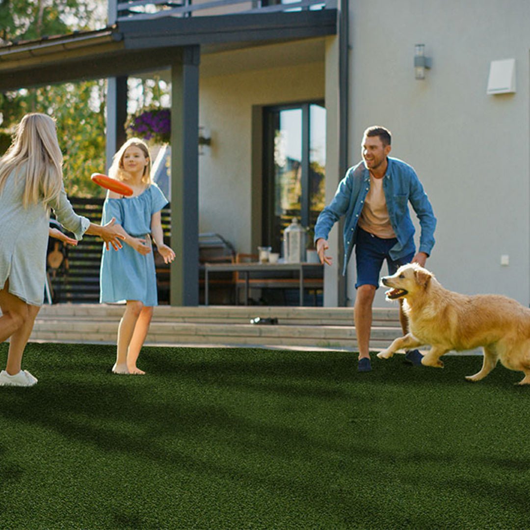 Elevate your landscape with Evergrass Summer Gold artificial grass, a premium solution that blends high-end aesthetics with unmatched durability. This turf delivers a rich, velvety texture that closely resembles the look and feel of natural grass - ideal for families, pets, and luxury outdoor settings. Built with our exclusive BioLuxe Worry-Proof Technology, Summer Gold features antimicrobial protection and odor control, making it a safe and hygienic choice for children and pets. Its advanced drainage rate of 280 inches per hour ensures quick drying and eliminates mud or standing water, even after heavy rain. The carefully crafted color blend of field green and olive green - with minimal shade variation - creates a lush, vibrant lawn that stays beautiful in every season. Whether you're designing a relaxing backyard escape or an elegant entertaining space, Evergrass Summer Gold Artificial Turf offers the perfect combination of comfort, performance, and upscale appeal. Pair with your favorite outdoor porcelain pavers for an elevated look!