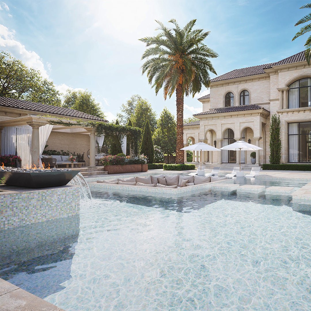 Meticulously crafted with exceptional attention to detail, these glass mosaic tiles boast a captivating iridescent finish that brings an elegant and refined touch to any indoor or outdoor living space. The Gloss series by Bisazza is designed to transform ordinary surfaces into extraordinary focal points. Whether you are aiming to create a tranquil retreat in your backyard pool area or looking to refresh your kitchen backsplash with a sleek, modern flair, the Gloss series delivers sophistication and timeless beauty. The shimmering, light-reflective qualities of these tiles add depth and visual interest, enhancing the ambiance of your space with a subtle yet stunning glow.