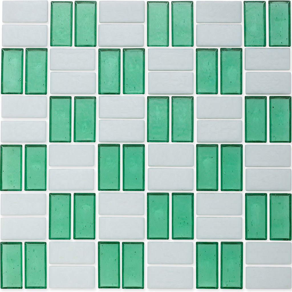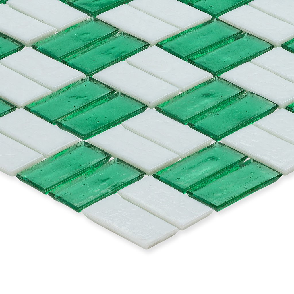Malachite and White, 1" x 2" Basket Weave Alternating Pattern - Glass Tile