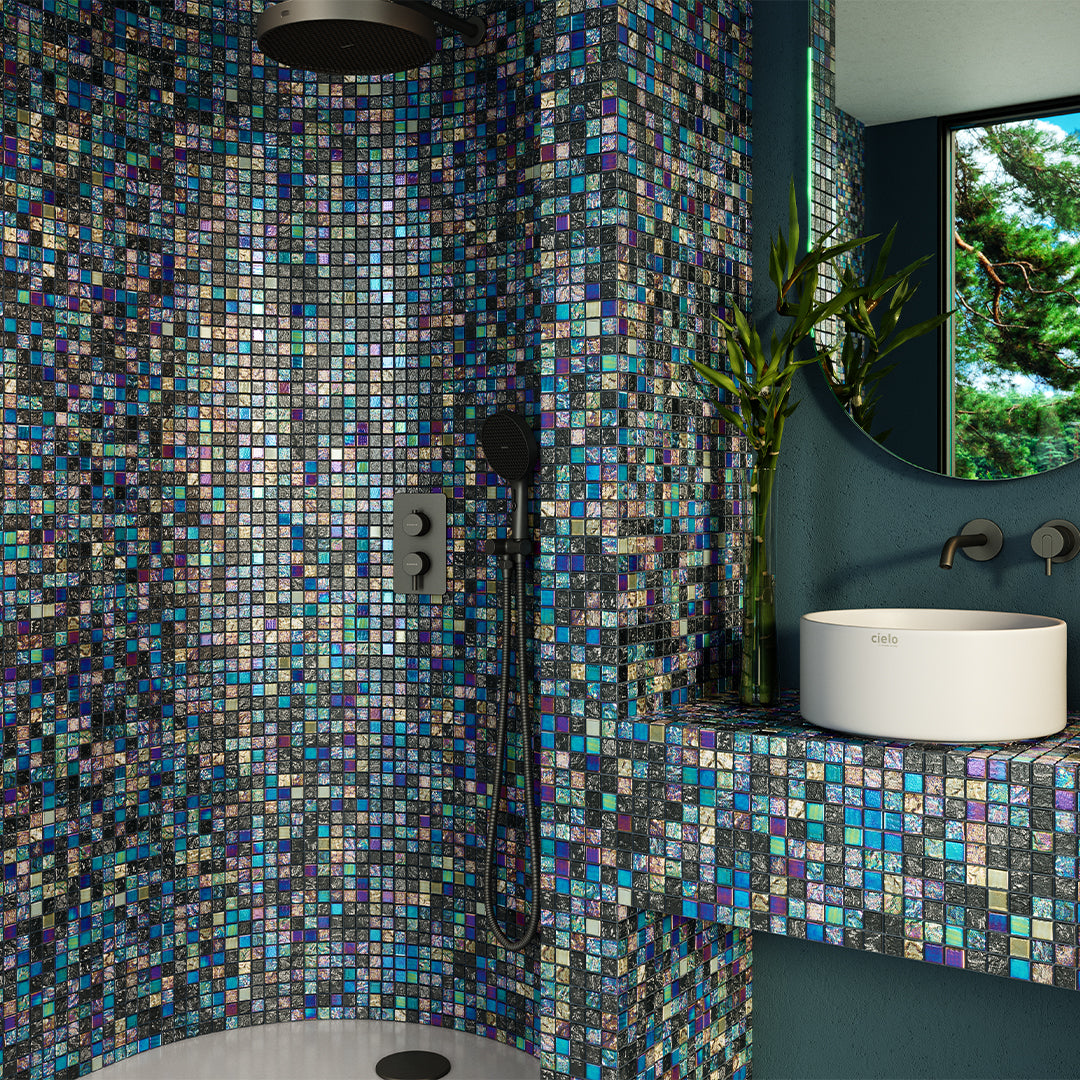Transform your pool into a luminous retreat with the enchanting beauty of the Mystic Series by Vidrepur. Inspired by the depth, color, and light of natural waters, these eye-catching 1" x 1", and 1" x 2" glass tiles blend innovative craftsmanship with artistic design for a truly mesmerizing finish. Moody tones, subtle movement, and light-reflective surfaces create a magical shimmer beneath the water, turning every swim into a visual escape. Ideal for designing an all-glass tile pool or enhancing spas, waterlines, and fountains, the Mystic Series adds depth, elegance, and a touch of drama to both residential and commercial spaces. Built for long-lasting performance and color vibrancy, these pool tiles offer endless ways to create a one-of-a-kind aquatic oasis. Step into the allure of the Mystic Series - where color, light, and water come together in perfect harmony.
