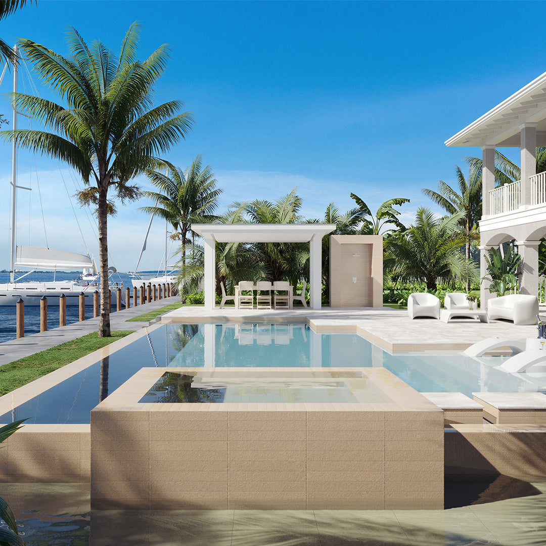With a crisp, contemporary color palette, the Tiderock Porcelain Pool Tile Collection brings a refined sense of style to any environment - from luxury pool waterlines and outdoor living spaces to modern kitchens and spa-inspired bathrooms. Crafted in the USA with 100% regionally sourced materials, Tiderock’s versatile hues and textures echo the look of handmade ceramics, adding warmth, character, and depth to both residential and commercial designs.