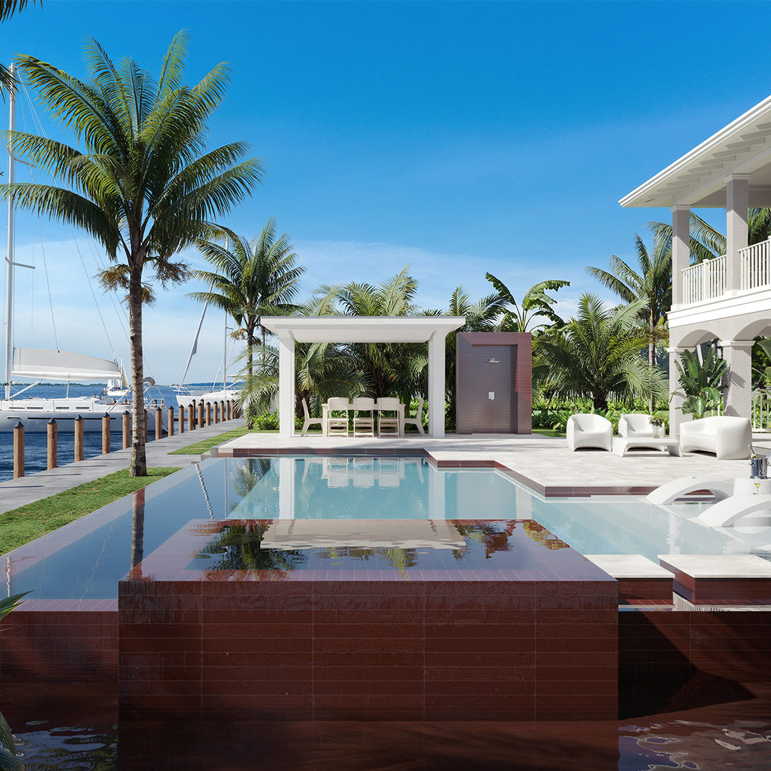 With a crisp, contemporary color palette, the Tiderock Porcelain Pool Tile Collection brings a refined sense of style to any environment - from luxury pool waterlines and outdoor living spaces to modern kitchens and spa-inspired bathrooms. Crafted in the USA with 100% regionally sourced materials, Tiderock’s versatile hues and textures echo the look of handmade ceramics, adding warmth, character, and depth to both residential and commercial designs.