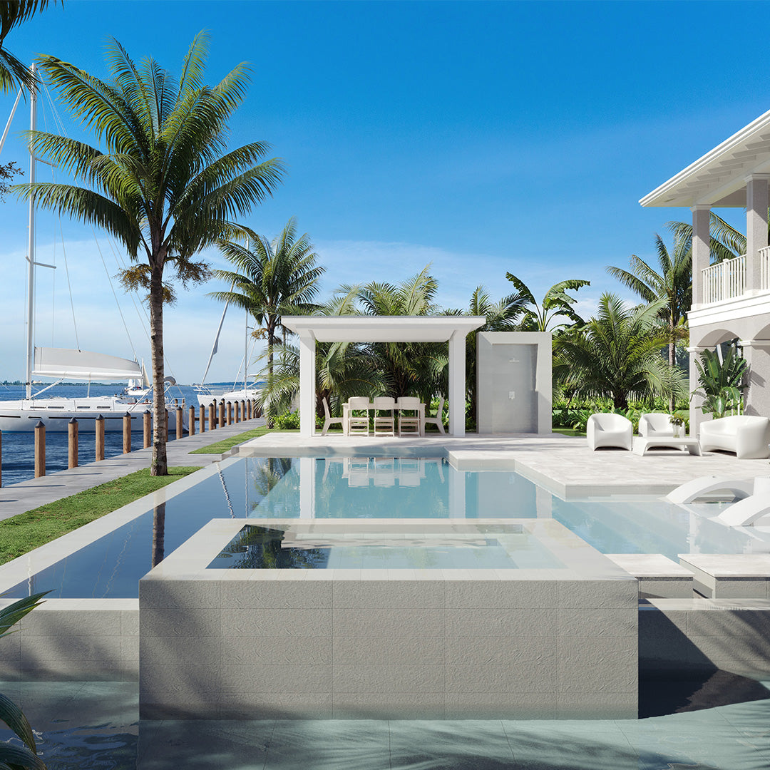 With a crisp, contemporary color palette, the Tiderock Porcelain Pool Tile Collection brings a refined sense of style to any environment - from luxury pool waterlines and outdoor living spaces to modern kitchens and spa-inspired bathrooms. Crafted in the USA with 100% regionally sourced materials, Tiderock’s versatile hues and textures echo the look of handmade ceramics, adding warmth, character, and depth to both residential and commercial designs.